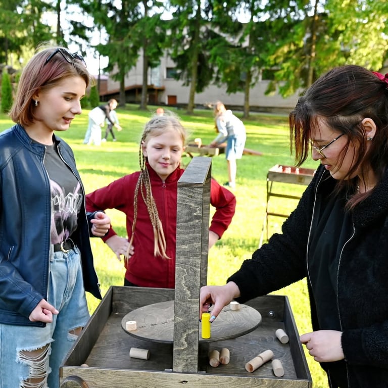 Balansinis – medinis lauko pusiausvyros žaidimas, kurį galite išsinuomoti renginiui Šiauliuose.